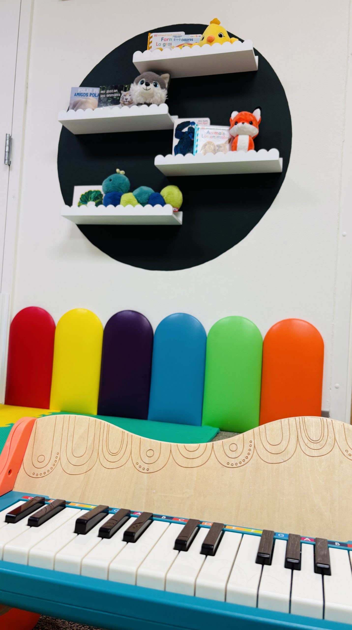 The Patitos classroom is home to the youngest children at our West location, where every moment is an introduction to the rhythms, sounds, and joy of the Spanish language. Here, our littlest learners begin their bilingual journey surrounded by warmth, music, movement, and sensory exploration. The environment is calm, nurturing, and designed to support their earliest milestones—social, emotional, physical, and cognitive.